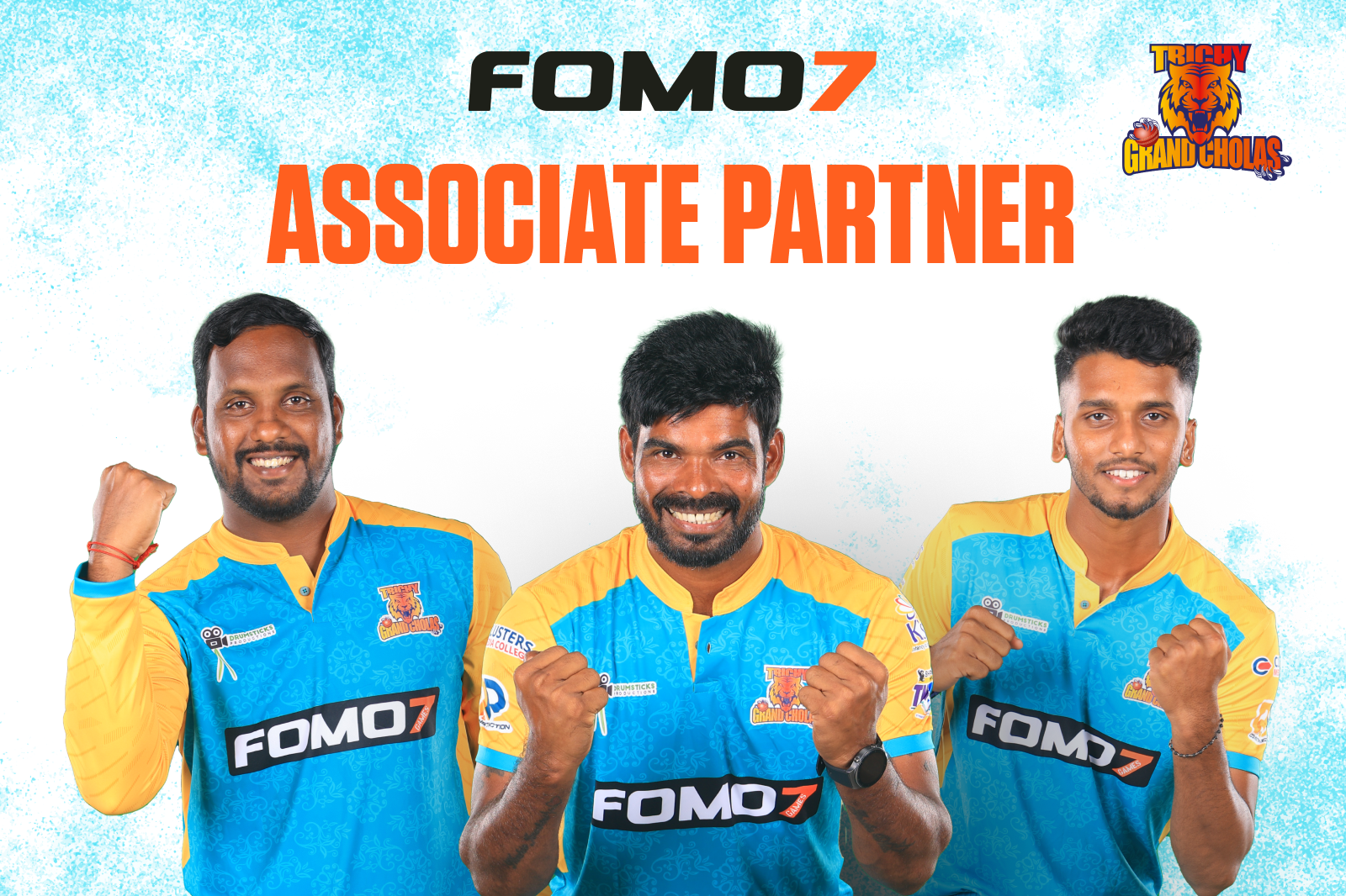 FOMO7, a premium online sports prediction and gaming platform, is the new Title Sponsor of the Trichy Grand Cholas for the upcoming Tamil Nadu Premier League (TNPL) 2024. This exciting partnership marks a significant milestone for both FOMO7 and the Trichy Grand Cholas, as they join forces to heighten the excitement and engagement of the highly anticipated cricket tournament.